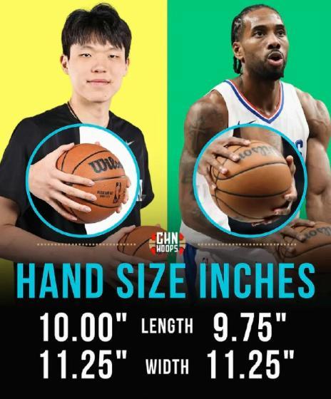 裸足2米16的身高,同届第一的手长(比伦纳德还长)和第二的手宽,证明杨瀚森的巨人身材没有水分。
