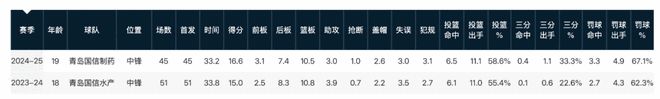 但纵观过去一年里杨瀚森球场上的表现,国家队也好,俱乐部也好,其实是没有发生颠覆性变化的。至少数据上没有反映出这一点,甚至说除了三分命中率从22.6%提升到33.3%,其余基础数据都几乎没有变动。