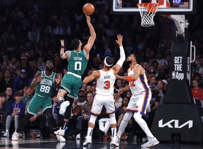 最近一次对阵凯尔特人的比赛,原本尼克斯是有机会终结面对前三球队不胜的尴尬纪录。第四节他们一度把分差追到只剩4分,士气正盛。但随着唐斯想用一记隔扣吹响反攻号角却失败之后,锡伯杜不得不把扣完篮一直捂着腿的唐斯换下场,而轮换计划被打乱了的尼克斯,又被凯尔特人抓住机会一波拉开比分,吃下0胜7负的结果。