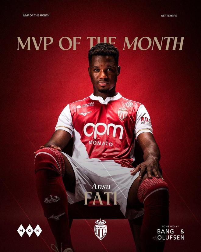 摩纳哥官方宣布,法蒂当选队内9月最佳球员。