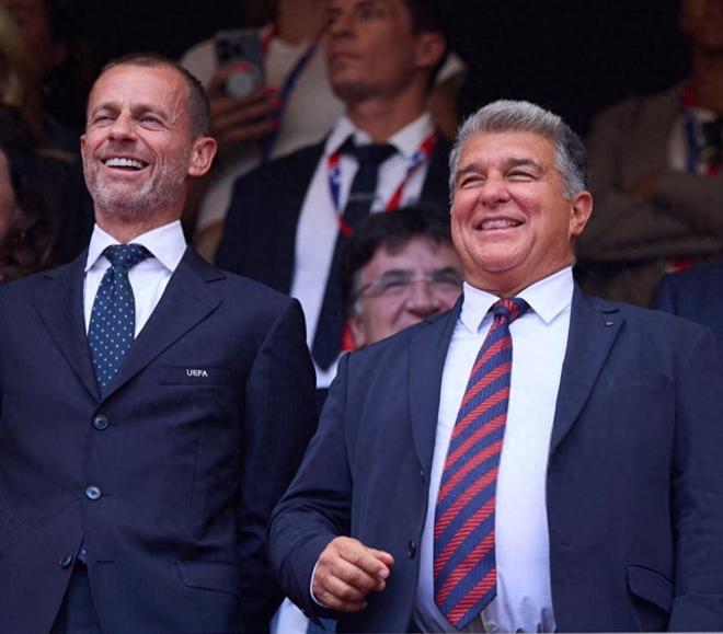 另一个体现双方关系缓和的标志性画面是:上周三,欧足联主席亚历山大·切费林亲临蒙特惠奇球场的贵宾包厢,现场观看了巴萨对阵巴黎圣日耳曼的比赛。