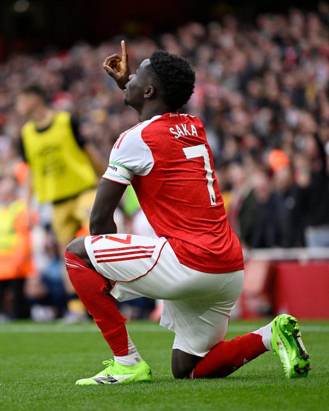 10月4日英超日报讯 北京时间今晚,英超第7轮,阿森纳主场2-0击败西汉姆。萨卡本场比赛踢满了90分钟,利用点球打入了一球。